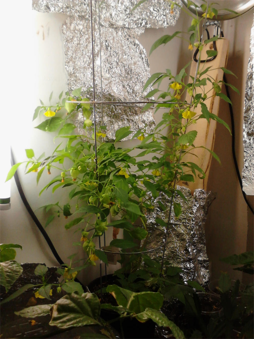 ↓ Tomatillo (Verde) ↓When it comes to Tomatillos, I suggest you NEVER grow them indoors. They make a huge mess by constantly dropping flowers that dry and flake-off everywhere! Not worth the immense amount of water they require indoors in my opinion.
